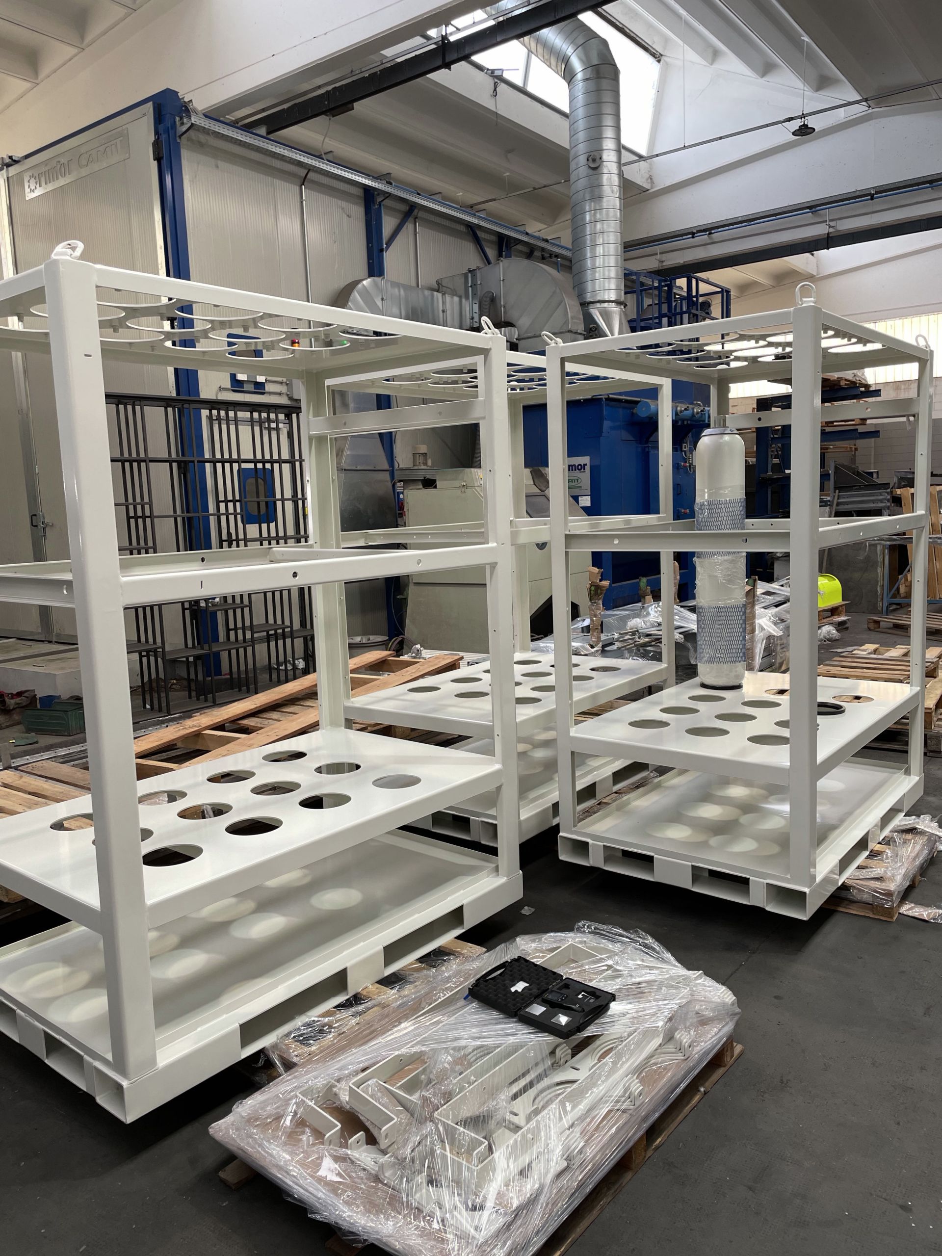 Siamo divenuti capo commessa per la realizzazione di strutture metalliche di medie dimensioni e notevoli volumi produttivi, collaborando in maniera propositiva nella fase progettuale. Questo progetto ha previsto inoltre la gestione della verniciatura certificata secondo ciclo marino e l’installazione con montaggio di componenti forniti da aziende terze (appartenenti al parco fornitori del cliente).