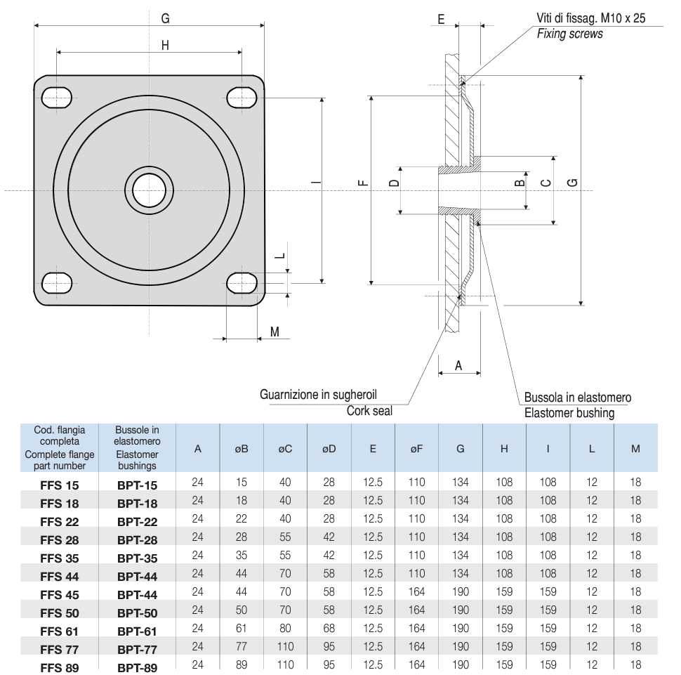 Le flange permettono il fissaggio sul serbatoio di tubazioni in aspirazione o sul ritorno e la manutenzione o il semplice controllo dei filtri immersi nel serbatoio.