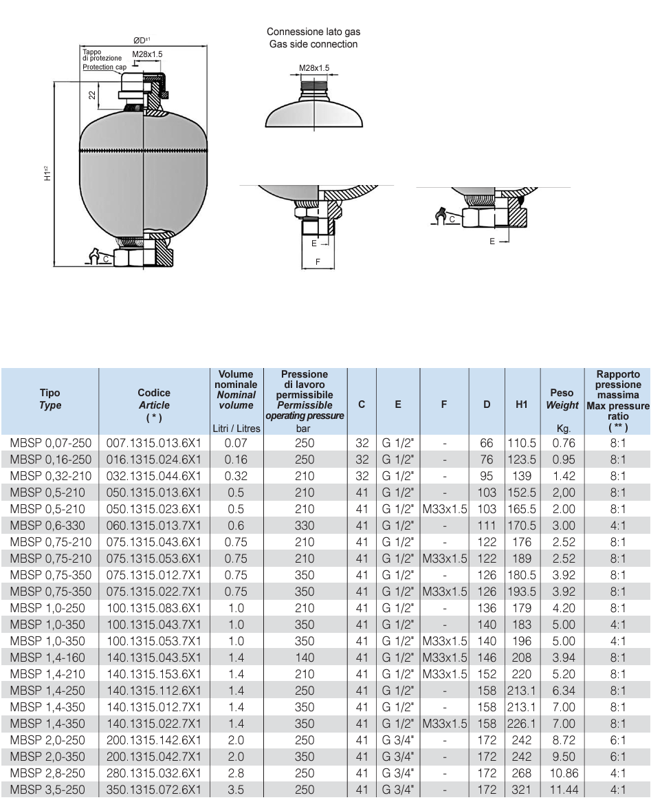 (**) rapporto di compressione ammissibile per diaframma/membrana